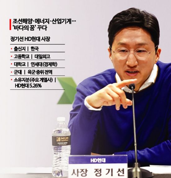 정기선 부회장은 주요 해외 사업을 총괄하며, 경영자로서의 활동 영역을 넓혀가고 있다. 2015년 사우디 국영회사 아람코와의 전략적 협력관계 구축사업을 진두지휘하며 합작조선소 IMI 설립을 주도한 이후, 2021년에는 아람코와 수소 및 암모니아 관련 MOU 체결했으며, 지난해 11월에는 무함마드 빈살만 사우디아라비아 왕세자를 직접 만나 양자 간 협력방안에 대해 논의하기도 했다.
