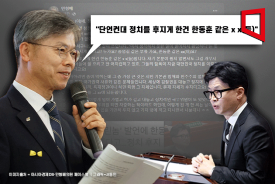 이에 대해 민 의원은 "정치를 후지게 했다고? 누가요? 송영길 같은 부류가요, 한동훈 같은 xx(이)요"라며 "단언컨대 정치를 후지게 한건 한동훈 같은 x x(들)"이라고 했다.