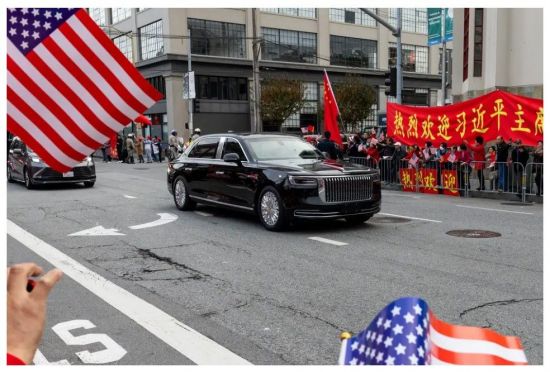 바이든 대통령이 현관 앞에 주차된 시 주석의 의전차량을 가리키며 "이 차 정말 멋지다"고 말하자, 시 주석은 "나의 훙치다. 국산이다"라고 답했다. 중국 측 수행원이 차량 뒷문을 열자 바이든 대통령은 허리를 숙여 차량 내부를 들여다본 뒤 "오, 나의 캐딜락과 비슷하다"고 감탄했다.