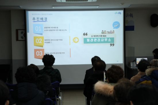 강북구는 이 사업 예산지원 근거 마련을 위해 조례를 개정해 20세대 미만 공동주택을 ‘임의관리 공동주택’이라 정의했다. 지난해 10월에는 주민 대상 설문조사도 진행했는데 청소, 공용시설 관리, 안전 및 주차 문제에 대한 지적이 많았기에 그런 부분을 해결하는 데 우선순위를 뒀다.