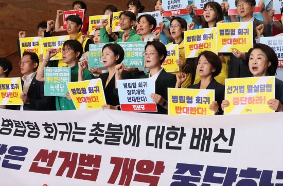 하지만 친명(親明)계를 중심으로 병립형 비례대표제로의 회귀를 시사하는 발언이 끊이지 않는다는 점에서 앞으로도 이를 둘러싼 논란은 이어질 전망이다. 오늘도 김영진 민주당 당대표 정무조정실장이 MBC '김종배의 시선집중'서 "권역별 비례대표제, 수도권 중부권 남부권을 나눠서 권역별 비례대표를 통한 병립형이 지금 여야가 최소한 합의할 수 있는 안이 아닌가 보고 있다"고 했다.