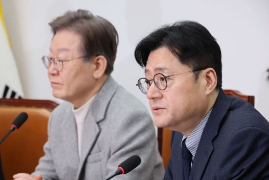 홍 원내대표는 국민의힘 지도부가 전날 윤석열 대통령과 오찬을 한 뒤 브리핑에서 "내년도 예산안 처리를 위해 야당에도 협조를 구하기로 했다"고 밝힌 것을 두고는 "그동안의 잘못을 숨기고 '엉터리 예산'을 밀어붙이겠다는 알리바이 만들기라면 단념하기를 바란다"며 "민주당이 제시한 민생·미래 예산안에 성의 있는 태도부터 보이라"고 요구했다.
