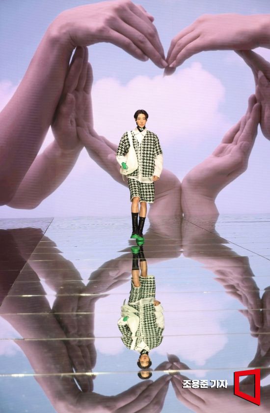6일 서울 삼성동 섬유센터 이벤트홀에서 열린 '2023패션대상'에서 신진디자이너 하이브리드 패션쇼가 펼쳐지고 있다. 사진=조용준 기자 jun21@