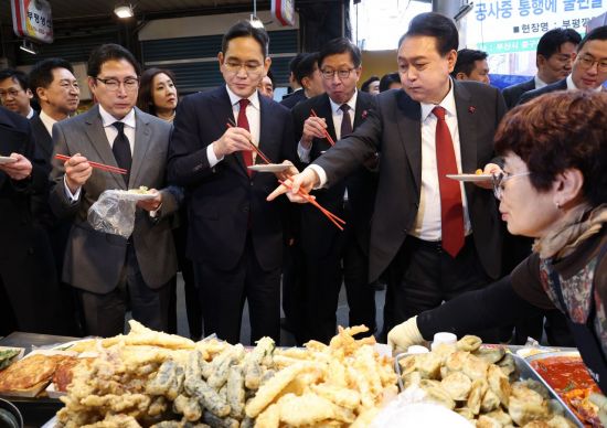 尹 대통령과 재계 총수들 국제시장行에 정치권 반응