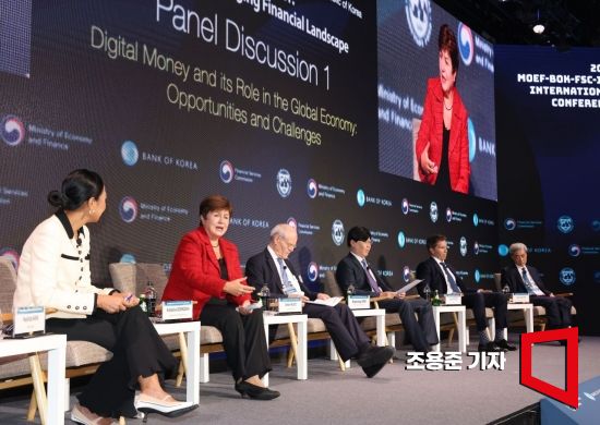 크리스탈리나 게오르기에바 IMF 총재가 14일 서울 종로 포시즌스호텔에서 열린 한-IMF디지털자산 컨퍼런스에서 패널 토론을 하고 있다. 이번 행사는 디지털 화폐의 경제적 영향과 전망, 가상자산 규제의 방향, 화폐의 미래와 중앙은행의 역할 등이 토론 된다. 사진=조용준 기자 jun21@