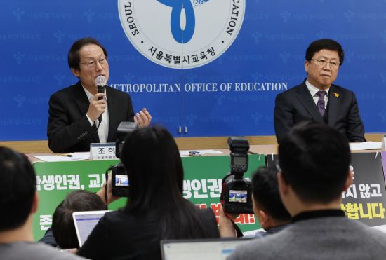 조 교육감과 최 교육감은 이날 서울시교육청에서 기자회견을 열고 "서울시의회는 학생인권조례가 학생들에게 동성애를 권장하고 성 문란을 조장하며, 학생의 권리만 보장하여 교권 붕괴를 초래하고 있다는 폐지론자들의 주장에 동조하여 조례 폐지의 절차를 밟고 있다"고 비판했다.