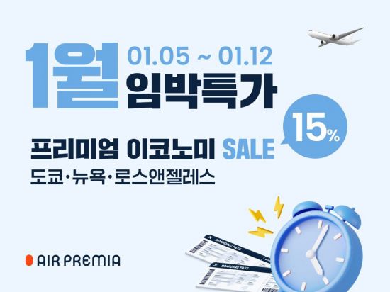 에어프레미아 관계자는 "저렴한 비용으로 프리미엄 이코노미를 경험할 수 있는 기회"라며 "설 연휴가 포함된 프로모션인 만큼 여행을 준비하고 있는 고객들에게 좋은 기회가 되길 바란다"고 말했다.