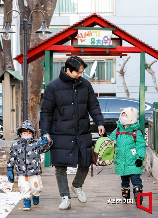 가족친화정책 우수기업인 중소기업 모션에 다니는 진광일씨(38)가 서울 강서구의 한 어린이집에 아이를 데려다주고 있다. 진씨는 모션의 유연근무제를 활용해 일주일에 두 번 아이 등원을 도맡아 하고 있다. 진씨가 육아에 동참하면서 경력이 단절됐던 아내는 재취업에 성공했다. 진씨는 "'일은 아빠, 육아는 엄마"라고 생각하던 종전의 사고방식이 180도 바뀌었다"고 강조했다. 사진=강진형 기자