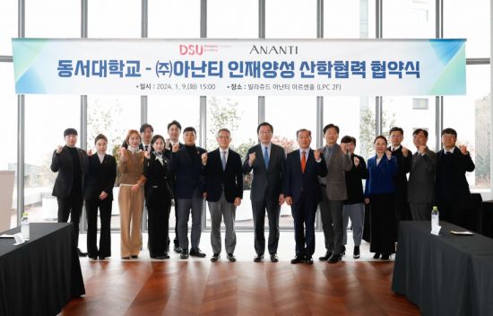 동서대학교(총장 장제국)와 아난티(대표 이만규)는 9일 오후 3시 아난티가 지난 2023년에 새로 오픈한 빌라쥬드 아난티 아르센홀에서 대학과 기업 간 실효성 중심의 산학협력·장기적 교류와 협력을 통한 상호 협력적 발전, 대학의 인재 육성과 기업의 인적자원관리 향상 간 접점에 대한 공동 관심사를 중심으로 업무협약(MOU)을 체결했다.