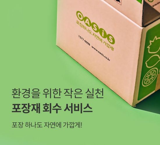 한편, 오아시스마켓은 포장재 회수 서비스 외에도 모든 상품을 한 박스에 담는 '합 배송 서비스', 에어캡과 각종 비닐 등 포장재를 최소화한 '프리미엄 포장 서비스' 등을 제공하고 있다.