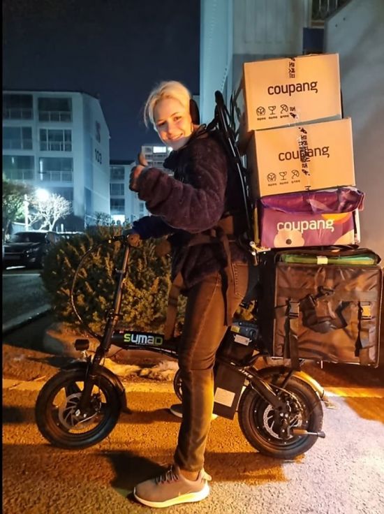 폴리나는 낮에는 남편을 돌보고 밤 10시 30분부터 아침 7시까지 쿠팡에서 배송 일을 하는 것으로 전해졌다. 그간 올린 영상을 통해 그는 폭설이 내리는 와중에도 택배 박스를 매고 쿠팡의 새벽 배송을 하는 모습을 공개했다. 폴리나는 “한국어로 배송 주소를 찾아다니는 게 서툴고 늦었지만, 이제는 제법 속도도 나고 잘하고 있다”며 웃음을 보였다. 또 “앞으로 5년간 매일 과일과 건강식을 먹어야 한다. 그래서 매일 토마토 주스를 만들어주고 있다”며 투병 중인 남편을 돌보는 모습도 공개했다.
