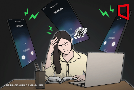 서울 중구에 사는 직장인 A씨(33)는 최근 쏟아지는 여론조사 전화로 인해 골머리를 앓고 있다. 업무 특성상 외부와 연락할 일이 잦은데, 업무시간에도 수십 통씩 여론조사 전화가 걸려 오는 바람에 중요한 업무 연락을 놓칠 뻔한 적이 한두 번이 아니었기 때문이다.