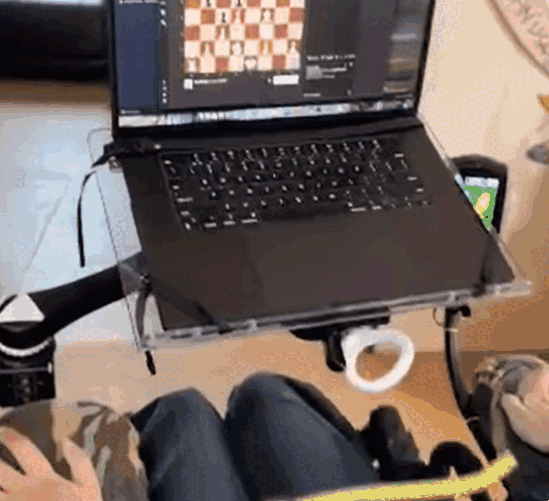 해당 영상을 보면 한 남성이 검은색 의자에 앉아 온라인 체스를 둔다. 그는 손을 움직이지 않고 시선을 이리저리 움직인다. 그의 시선을 따라 커서가 움직인다. 뇌파를 이용한 조종인데, 머리 주변에 별도의 장치는 없다. 옆에서 말을 시키는 남성과 대화하는 중에도 체스 말이 놓여지는 소리가 들린다.