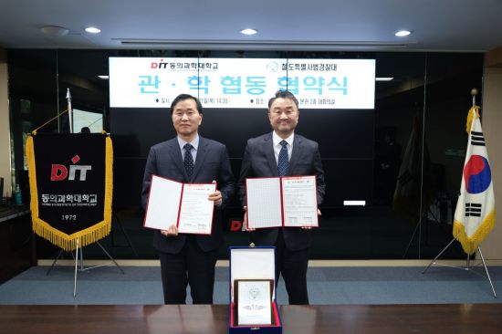 동의과학대학교는 지난 21일 철도특별사법경찰대와 유기적 연대를 확립하고 기관 자원과 지역인재개발 육성에 필요한 지식과 정보 교류를 위한 관·학 협동 협약을 체결했다.