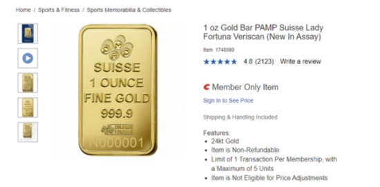 코스트코가 판매하는 골드바는 1온스짜리로 24K 순금이다. 골드바는 코스트코 회원만 구매할 수 있는데 가격은 시세에 따라 바뀐다. 지난해 12월의 경우 평균 기준 개당 약 2000달러(약 273만 원)에 판매됐다.