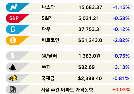 - 미 뉴욕증시 3대 지수, 일제히 하락 마감
