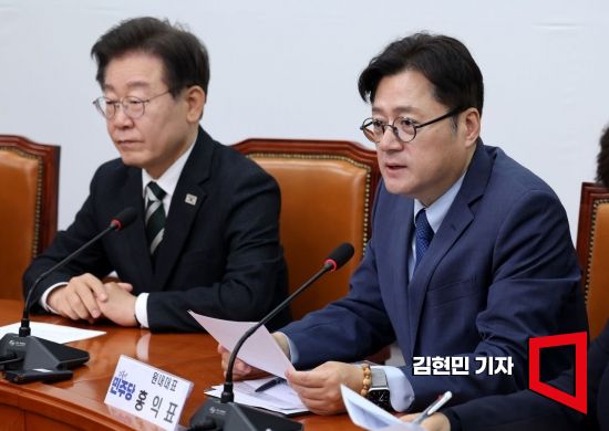 홍익표 더불어민주당 원내대표가 19일 국회에서 열린 최고위원회의에서 발언하고 있다. 사진=김현민 기자 kimhyun81@