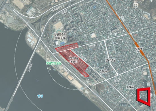 망원한강공원과 인접한 서울 마포구 망원동에서 모아타운 사업을 통해 모아주택 8개소에서 총 1512가구가 건립된다.