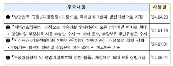 4중 안전장치는 ▲특허청의 방첩기관 지정 ▲기술경찰 수사 범위 확대 ▲국가기술의 해외유출 범죄 형량 상향 ▲영업비밀 침해에 상응한 징벌적 손해배상 한도 상향 등으로 집약된다.