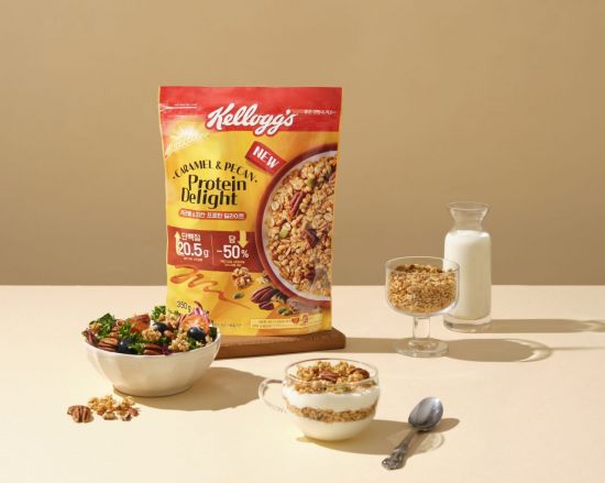 농심켈로그가 프로틴은 든든하게 채우고 당 함량은 50% 저감한 '카라멜&피칸 프로틴 딜라이트'를 출시했다. 은은한 단맛의 카라멜에 고소한 피칸의 풍미를 더해 입안 가득 다채로운 즐거움을 선사하는 제품이다. 균형 잡힌 영양 설계를 통해 100g당 삶은 계란 4개 분량의 단백질(20.5g)과 고구마 1.5개 분량의 식이섬유(6g)까지 함유했다.