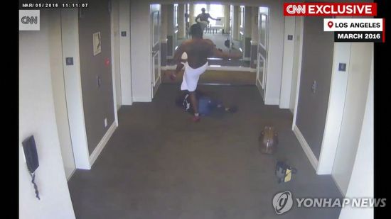 17일(현지시간) 미 CNN 방송은 2016년 3월 5일 로스앤젤레스(LA)의 한 호텔 복도에서 촬영한 CCTV 영상을 입수해 공개했다.