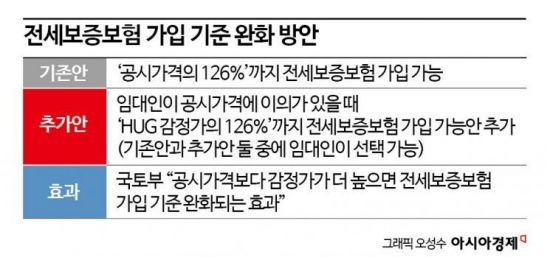 정부는 이에 따른 대책으로 ‘126%룰’은 유지하되, 임대인이 집값에 비해 공시가격이 낮다고 이의 신청을 하면 HUG가 산정한 감정가를 사용하도록 했다. 공시가격보다 감정가가 더 높으면 전세보증금반환보증 가입 기준이 완화되는 효과가 생긴다. 함영진 우리은행 부동산리서치랩장은 "노후 빌라보다 역세권 신축연립과 다세대 위주로 전세 반환보증 가입 문턱이 낮아질 것"이라며 "비아파트의 월세 전환 현상과 아파트 전세 쏠림 현상이 일부 개선될 것"이라고 예상했다.