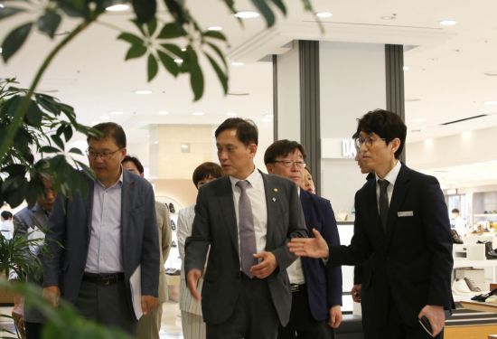 김 부위원장은 지하 1층부터 지상 10층에 이르기까지 매장을 두루 다니며 직원들의 고충과 목소리를 들었다.