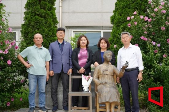 충남 서천군 봄의마을에 위치한 ‘서천 평화의 소녀상’에 꽃이 배달됐다.