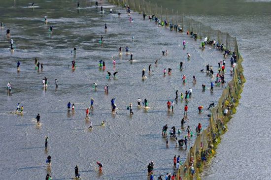 물이 빠진 갯벌 위 그물에는 주로 숭어, 농어, 돔 등의 다양한 어류가 걸리게 되며 이때 체험 관광객들이 갯벌 안으로 들어가 맨손으로 직접 잡는다.