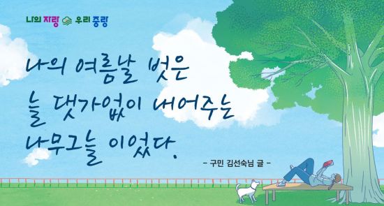 선정된 당선작은 문안에 어울리는 디자인과 함께 오는 9월부터 11월까지 중랑구청사 외벽에 게시된다.
