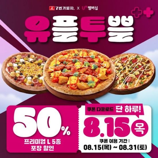 프리미엄 피자브랜드 7번가피자가 LG유플러스의 8월 ‘유플투쁠’ 프로모션에 참여한다고 밝혔다.