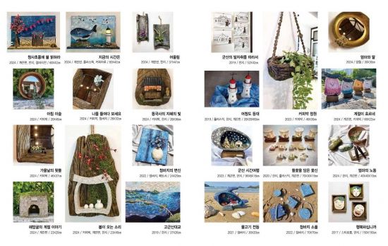 김 작가는 버려지는 쓰레기를 수거해 물성을 변화시킨 한지공예와 업사이클링 작품 활동에 창작 열정을 불태우고 있다. 이번 전시에서 플라스틱, 계란판, 청바지, 커피박 등 오브제를 활용한 순수 창작품을 만날 수 있다.