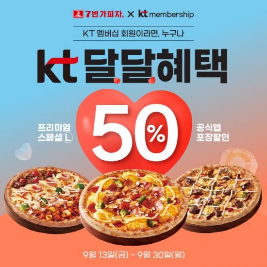 7번가피자가 KT 멤버십 고객 대상으로 ‘KT멤버십 달달혜택’ 프로모션을 진행한다.
