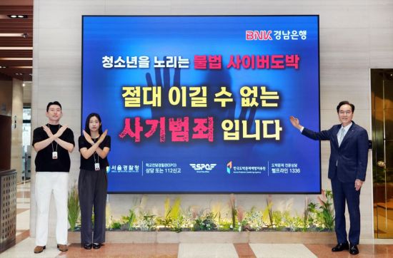 특히 ‘청소년을 노리는 불법 사이버도박, 절대 이길 수 없는 사기범죄입니다’ 문구가 나온 LED 전광판 앞에서 직원들과 함께 메시지를 전했다.