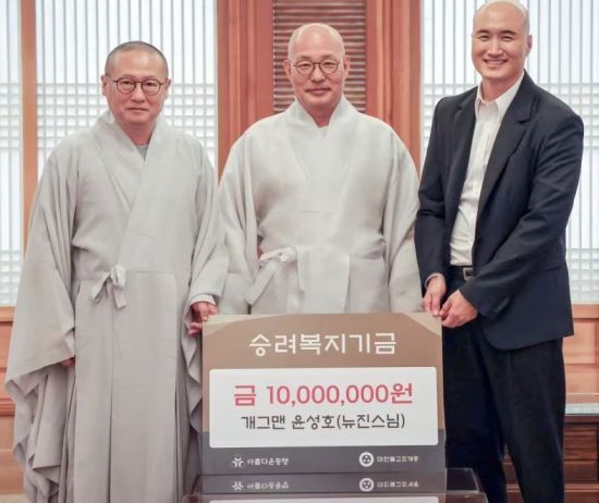 '뉴진스님'으로도 활동 중인 코미디언 윤성호가 승려들을 위한 노후 복지 기금에 1000만원을 기부했다. 윤성호가 기부금을 낸 재단은 '아름다운동행'으로, 대한불교조계종(조계종)이 설립한 공익 재단이다.