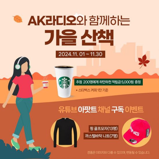 ![[알립니다] ‘AK라디오와 함께하는 가을 산책’ 챌린지 개최](https://cphoto.asiae.co.kr/listimglink/1/2024110107395882170_1730414397.jpg)