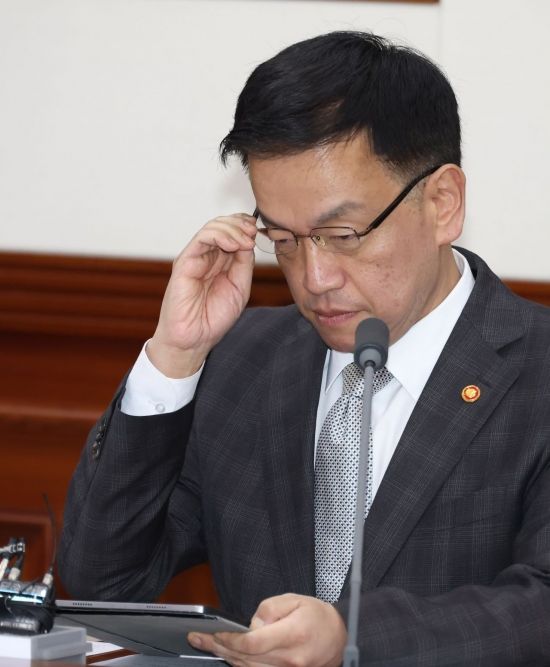 최상목 경제부총리 겸 기획재정부 장관이 7일 정부서울청사에서 열린 경제관계장관회의 겸 대외경제장관회의에 참석해 자료를 살피고 있다. 이날 회의에서는 미 대선 결과 대응 및 한-미 주요 통상 현안 대응 방안에 대한 논의가 진행됐다.