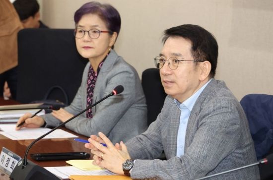 7일 서울 종로구 정부서울청사 별관에서 열린 배달플랫폼-입점업체 상생협의체 회의에 참석한 이정희 위원장이 회의를 주재하고 있다. 이날 회의에는 배달의 민족, 쿠팡이츠, 요기요, 땡겨요 등 플랫폼사를 비롯해 입점업체, 공익위원들이 상생방안을 논의했다.