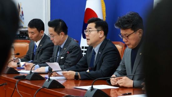 박찬대 더불어민주당 원내대표가 19일 국회에서 열린 원내대책회의에서 발언하고 있다.
