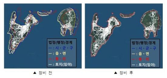2일 시에 따르면 섬 지역 법정구역(시군구, 읍면, 동리) 경계가 부동산종합공부시스템과 불일치해 도면의 필지별 경계정보와 위성영상 및 법정구역 경계를 활용해 오류자료를 정비했다.