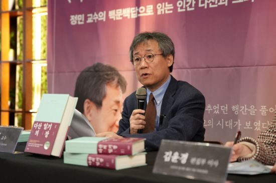 정민 한양대 교수가 지난 3일 서울 중구 프란치스코 교육회관에서 금정일록 등 다산 정약용의 일기 네 권을 완역하고 해제한 새 책 '다산의 일기장'을 설명하고 있다. [사진 제공= 김영사]