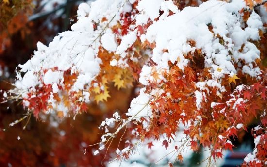 단풍이 채 떨어지기도 전에 눈이 내렸다. 단풍이 게으른 걸까, 눈이 급한 걸까(여의도 국회에서).