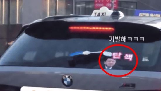 윤석열 대통령의 퇴진을 촉구하는 대규모 집회가 이어지고 있는 가운데 후면 유리 와이퍼를 '탄핵'으로 꾸민 차량이 포착돼 화제를 모으고 있다.