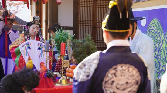 전통혼례는 전안례, 교배례, 합근례 등 고유의 의식 절차에 따라 진행됐다. 특히 전통혼례복, 예물, 폐백 음식 등은 철저한 고증을 통해 준비돼 전통문화의 진정성을 더했다.