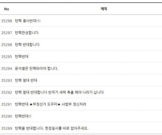 초기에는 '탄핵 찬성' 의견이 압도적으로 많았으나, 이후에는 탄핵에 반대하는 보수 성향 유권자들이 가세하면서 혼란이 가중됐다. 현재 게시판은 "탄핵에 찬성한다", "반대한다", "헌정질서를 지켜달라", "내란범을 체포하라", "반국가세력을 축출해야 한다" 등 찬반 여론이 뒤엉켜 아수라장이 된 모습이다.