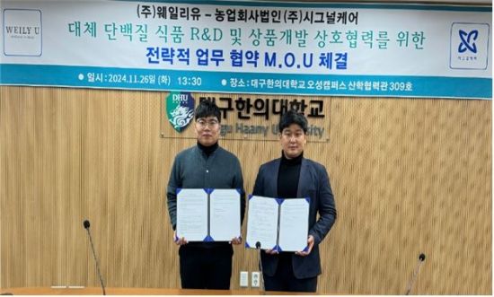 한국장학재단(이사장 배병일)은 대구청년창업센터 창업기숙사 입주기업 (주)웨일리유(대표 노승현, 대구한의대학교 호텔외식조리글로벌소프트웨어융합전공 21학번)가 농업회사법인 ㈜시그널케어(대표 양동섭)와 함께 전략적 업무협약을 체결했다고 24일 밝혔다.