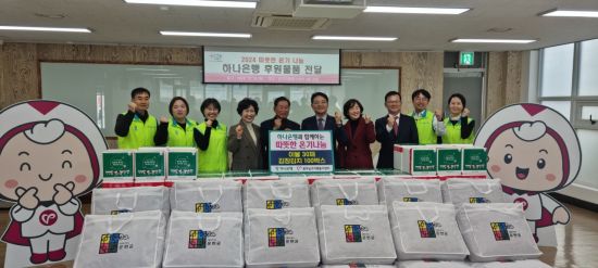 이날 하나은행이 전달한 후원 물품은 이불 30채와 김장김치 100박스 등이다. 기탁된 후원 물품은 지역 내 취약계층 아이들과 어르신 등에게 전달될 예정이다.