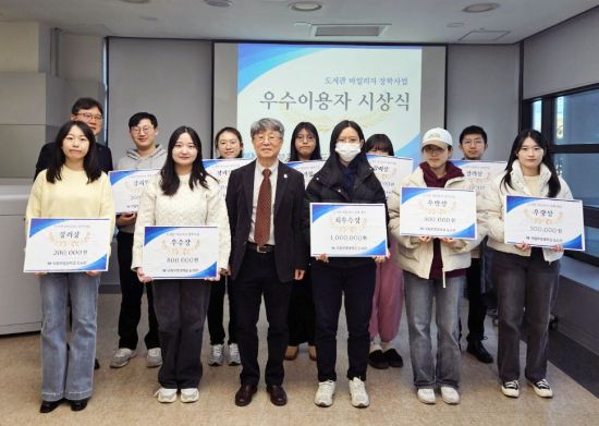 이날 김미현 학생(회계·재무학전공)이 올 한 해 동안 단행본 대출, 전자책 대출, 문화행사 참여, 이용 교육 참여, 독서감상문 공모에서 최고점을 받아 총 677점의 마일리지를 쌓아 장학금 100만원의 최우수상을 받았다.