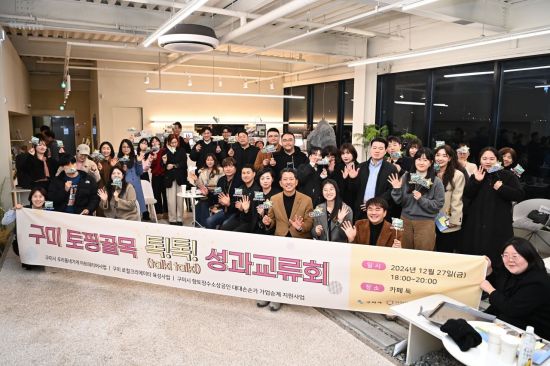 경북 구미시는 지난 27일 ‘카페 둑’에서 김장호 시장, 소상공인, 사업 담당자 등 40여명이 참석한 가운데 소상공인 정책과 지원사업 성과공유회 ‘구미 토핑골목 톡톡(talk,talk!!)’을 개최했다.