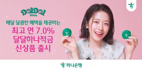 '달달 하나 적금'은 하나은행으로 급여를 이체하는 손님을 대상으로 매달 이벤트를 통한 풍성한 혜택과 최고 연 7% 금리를 제공하는 '하나원큐' 전용 적금상품이다.